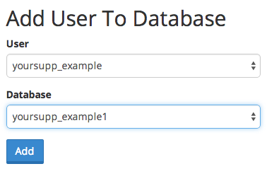5- Select both the name of your User and Database you want to Add. We listed our values above, notice they are selected in the dropdown menus pictured below.